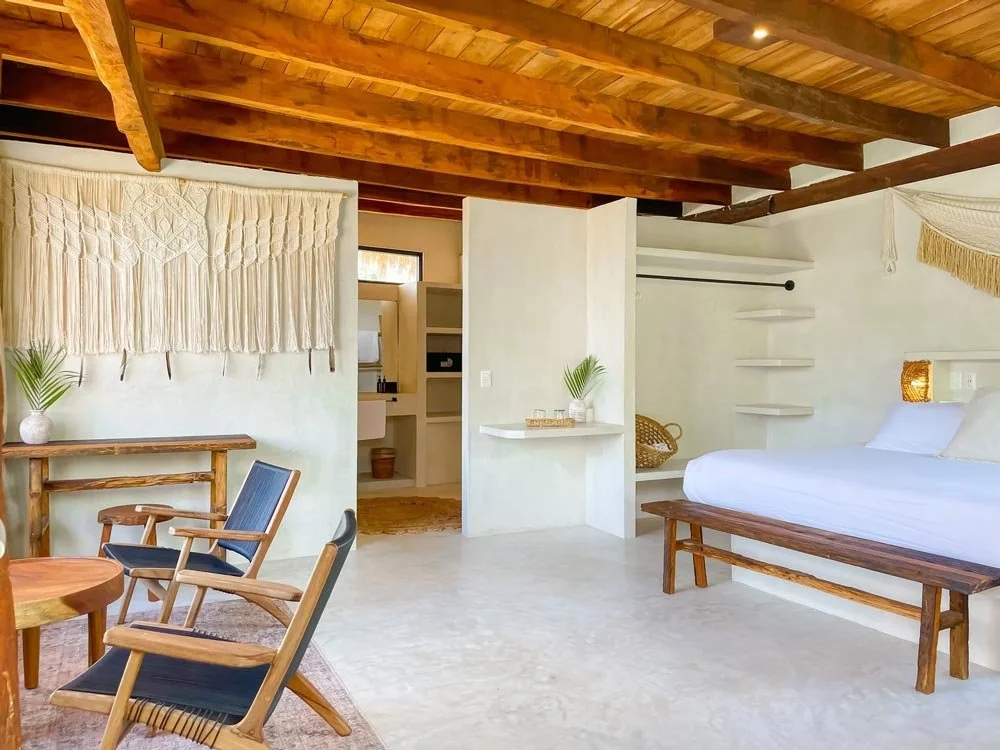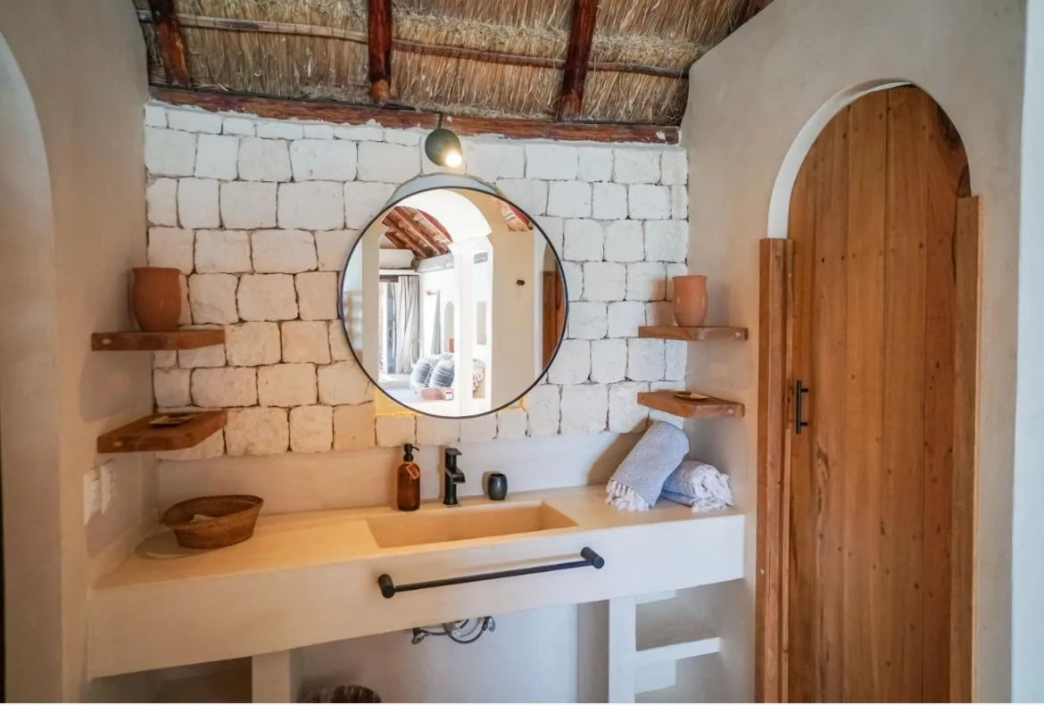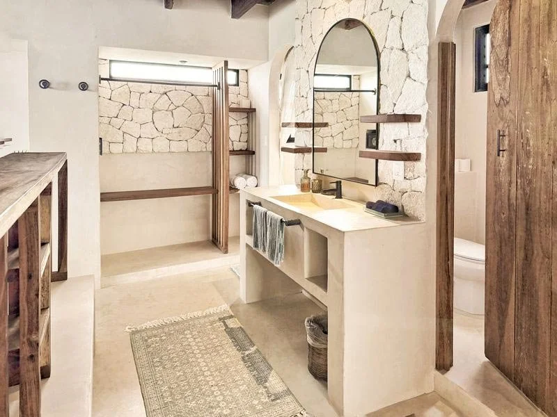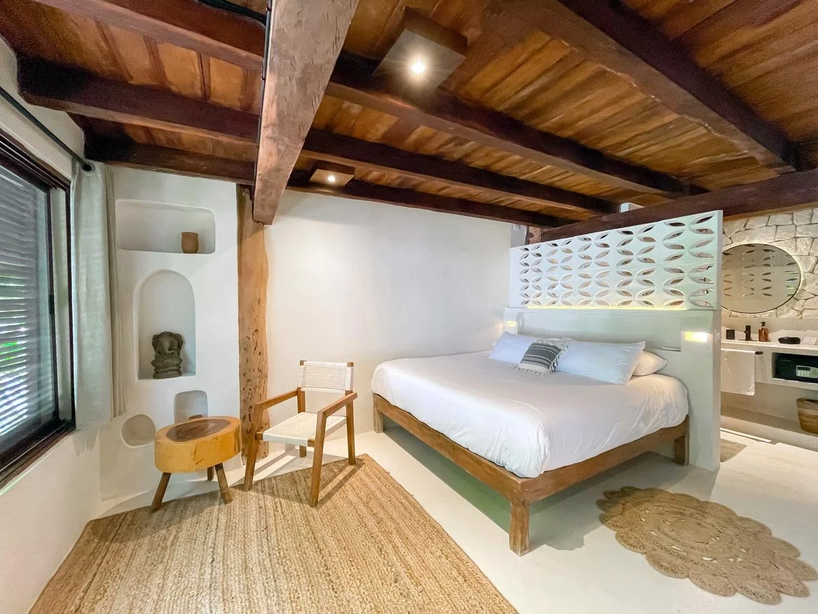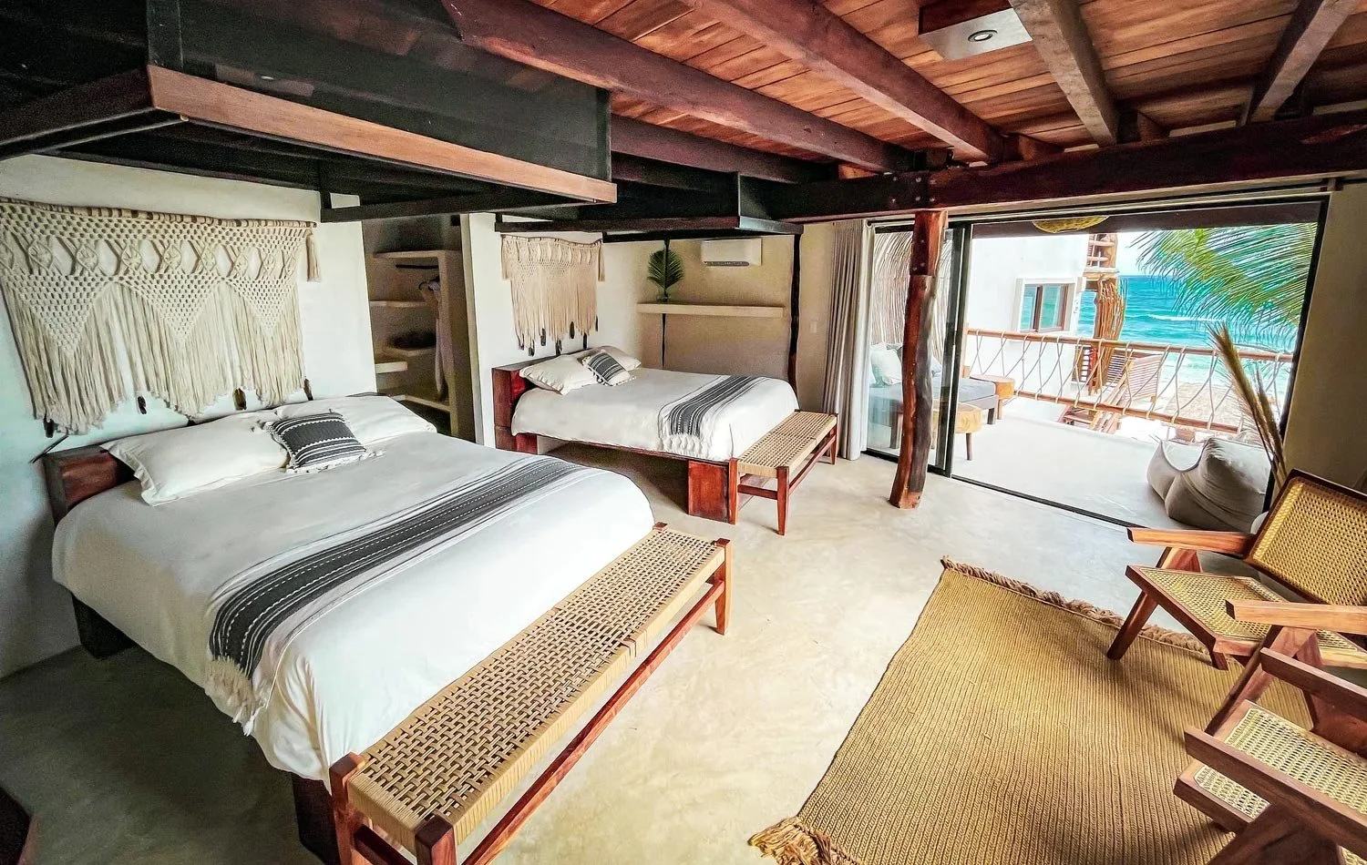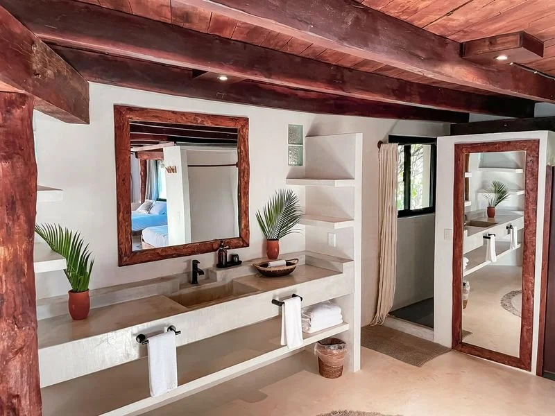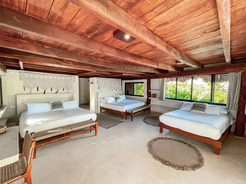Made with Love by Local Mayan Craftsmen. Each room embodies the essence of Tulum using smooth cement, Mayan stone, and centuries-old wooden columns; multiple staircases weave together the spaces, giving the feel of a modern-day Swiss Family Robinson.